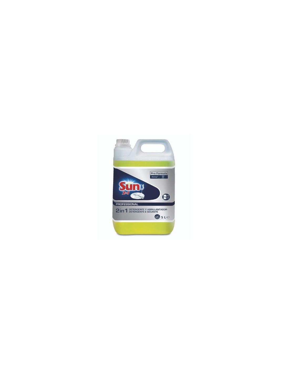 El lavavajillas con abrillantador Sun Profesional 2 en 1 en formato de 5 litros con el que con ahorrarás tiempo reduciendo el proceso habitual del lavado de vajilla. La fórmula profesional de Sun elimina con facilidad la suciedad y la pigmentación de la vajilla devolviendo el brillo original.