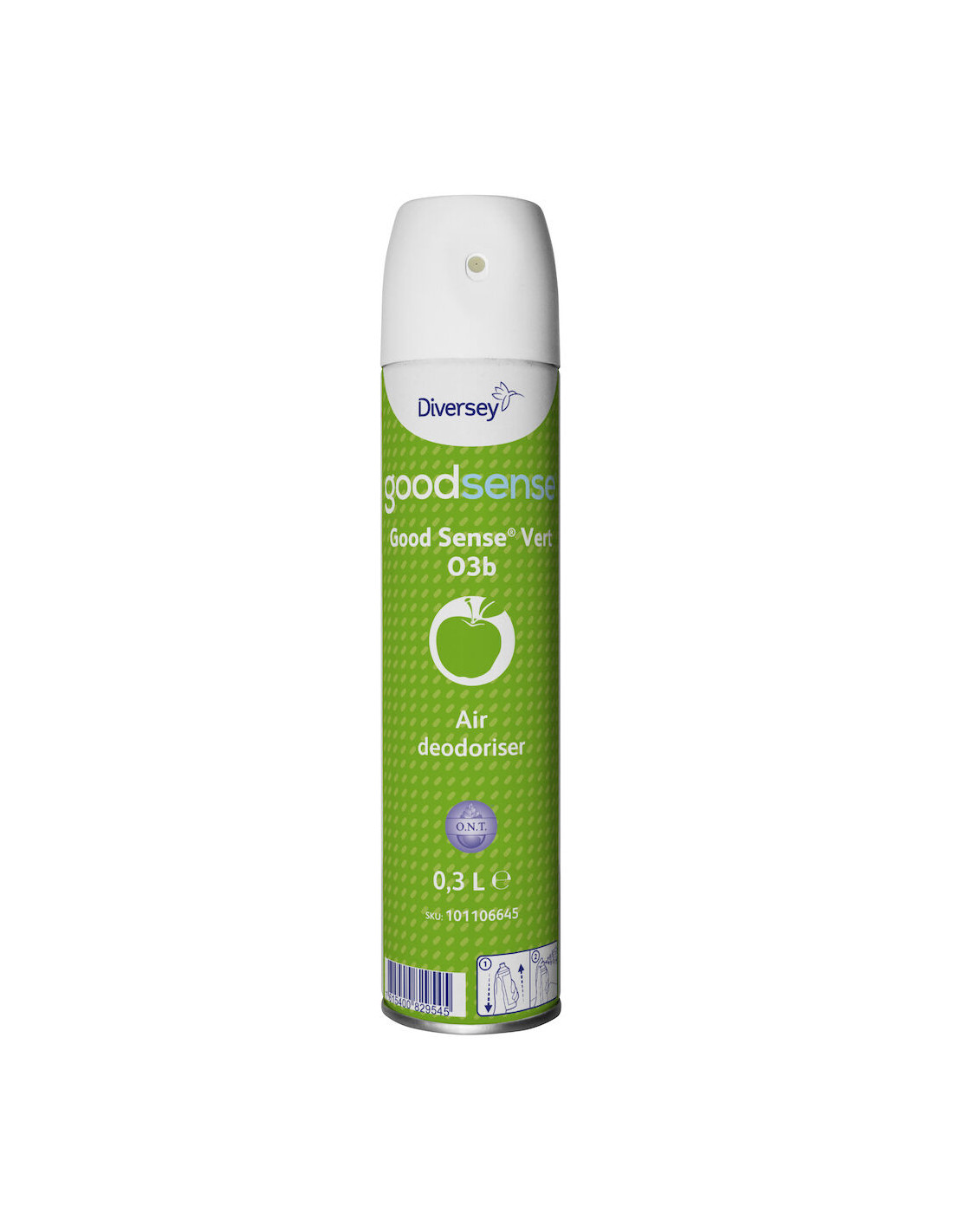 El ambientador Good Sense Vert está especialmente indicado para eliminar los malos olores de los edificios, restaurantes, bares, habitaciones de hotel, oficinas, lavabos etc… La tecnología O.N.T exclusiva de Diversey elimina las partículas que provocan el mal olor liberando después un fresco aroma.