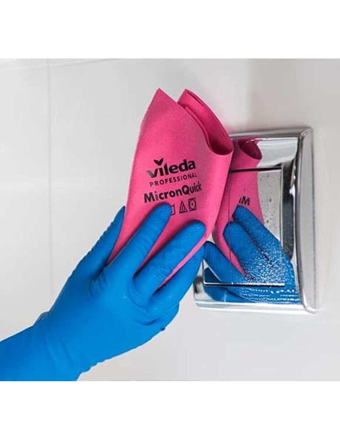 La bayeta Micronquick de Vileda en color rojo es la bayeta más adecuada para el método de preimpregnación. Se puede utilizar en seco o húmedo sobre todo tipo de superficies. Se trata de una bayeta muy resistente y que soporta muchos ciclos de lavado. La bayeta Microquick de Vileda es la bayeta de microfibra más fina del mercado, elimina las bacterias en un 99,99%, mejora el rendimiento de limpieza en un 25% y su resistencia le hacen ser efectiva hasta los 400 lavados.
