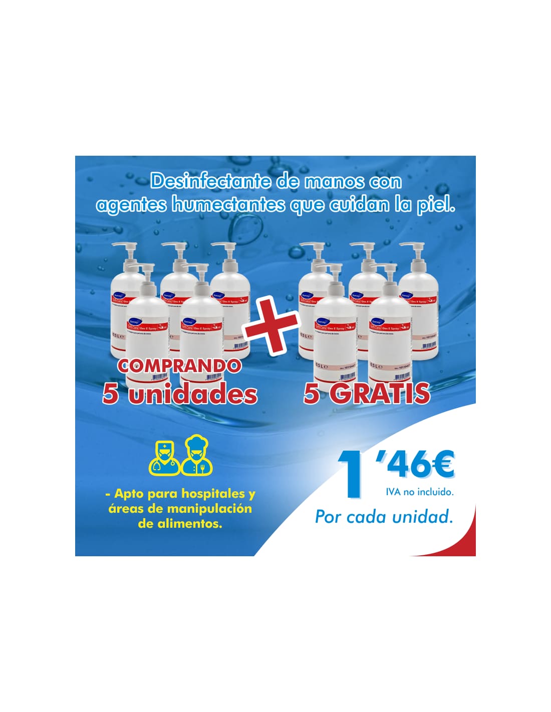 Con la compra de 5 unidades de Desinfectante de manos Des E Spray H5 de 500ml te regalamos otras 5 unidades. ¡Cada unidad te sale a tan solo 1,46€+iva!