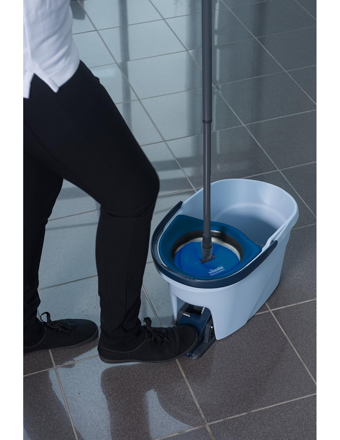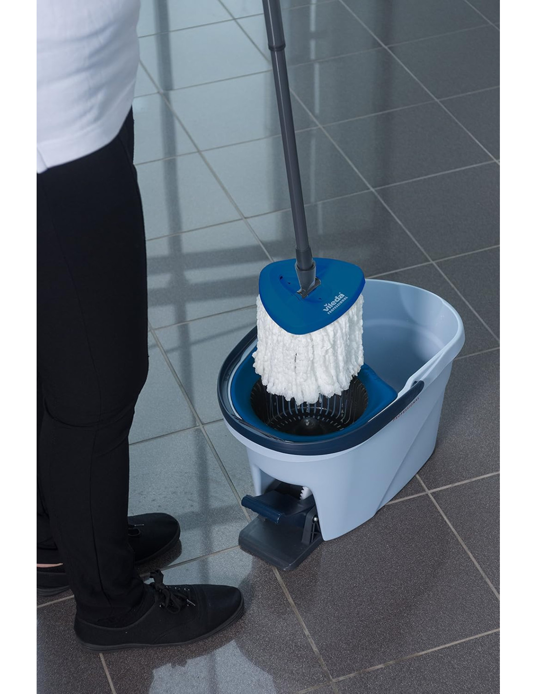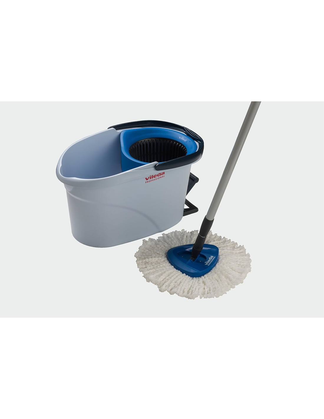 Ultraspin de Vileda es la evolución de la fregona tradicional. Su revolucionario escurridor por centrifugado reduce el esfuerzo y mala postura habitual cuando escurrimos la fregona en un cubo tradicional, con el Ultraspin de Vileda sólo presionando el pedal obtendremos un perfecto centrifugado ( podremos aplicar más o menos centrifugado al gusto). La mopa 100% de microfibras proporciona una limpieza superior a cualquier fregona tradicional, su forma triangular limpia con facilidad las esquinas, el trenzado y bordado de los cabos evitan que suelte pelos en el camino. Es válido para todo tipo de suelos o paredes. 12 litros de capacidad. COMPATIBLE CON CUALQUIER PALO DEL MERCADO DE ROSCA UNIVERSAL.