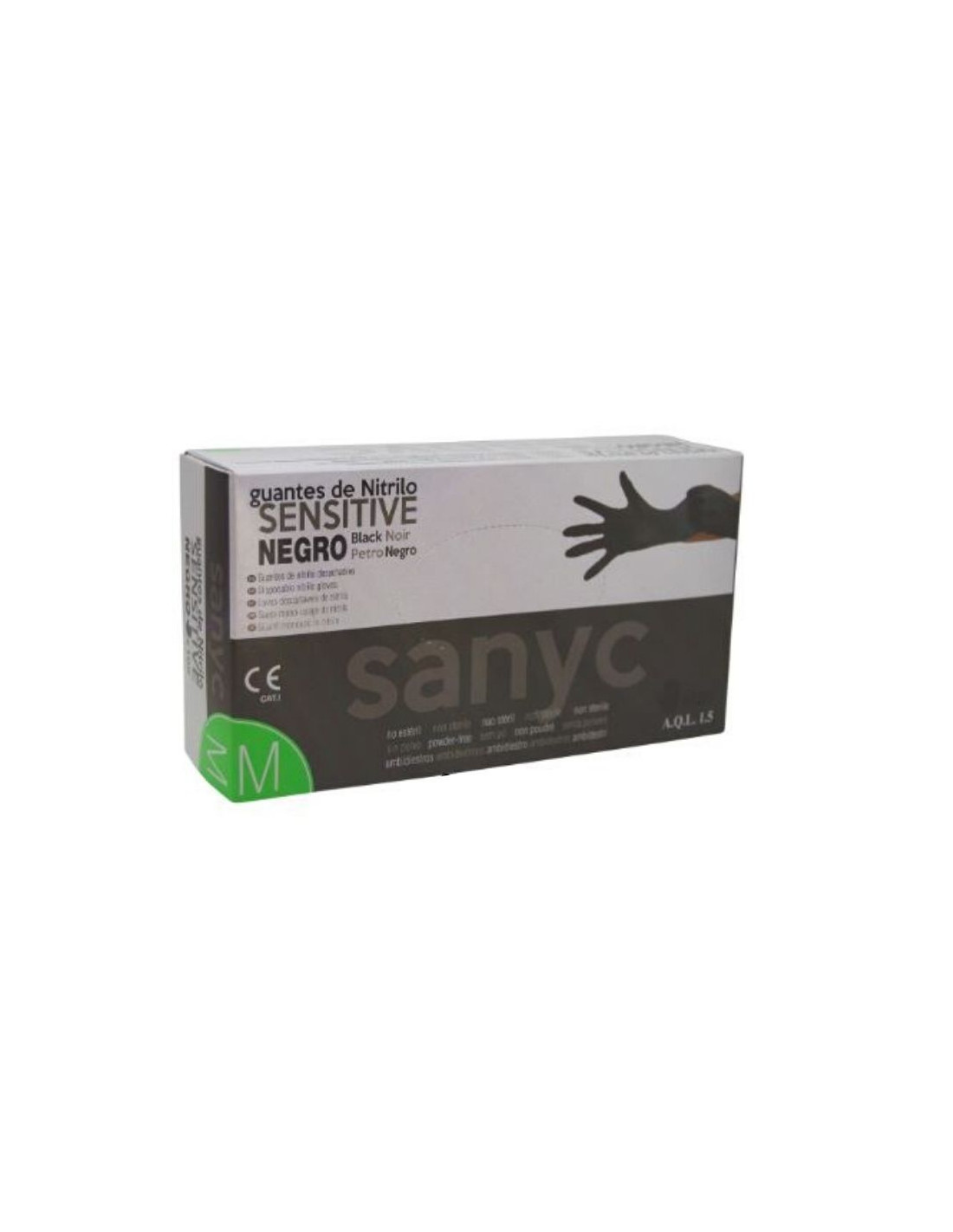 GUANTE NITRILO SANYC SENSITIVE NEGRO SIN POLVO TALLA MEDIANA 100 UNIDADES