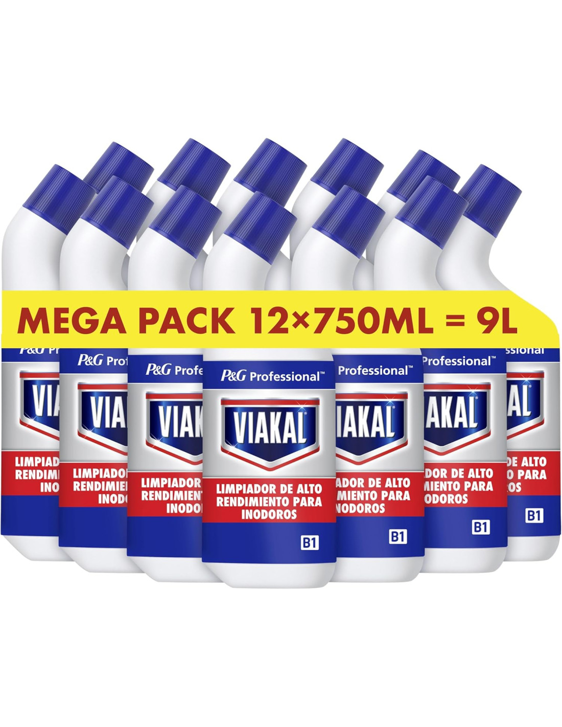 Viakal Professional, Limpiador para inodoros, 9L (12 x 750ml), eliminacion y prevencion de cal