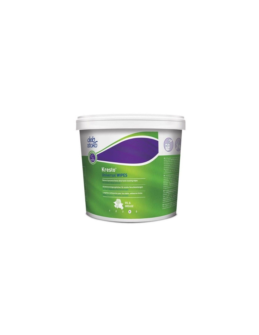 Los paños de limpieza de manos Deb Kresto Universal en formato de 4 unidades de 150 toallas cada una, son de gran tamaño y se utilizan sin necesidad de agua. Estos paños, muy resistentes, están impregnados de potentes agentes limpiadores a base de solventes que eliminan de las manos las suciedades más complicadas. De uso en entornos industriales, este paño es práctico, muy fácil de utilizar y de un agradable aroma cítrico.