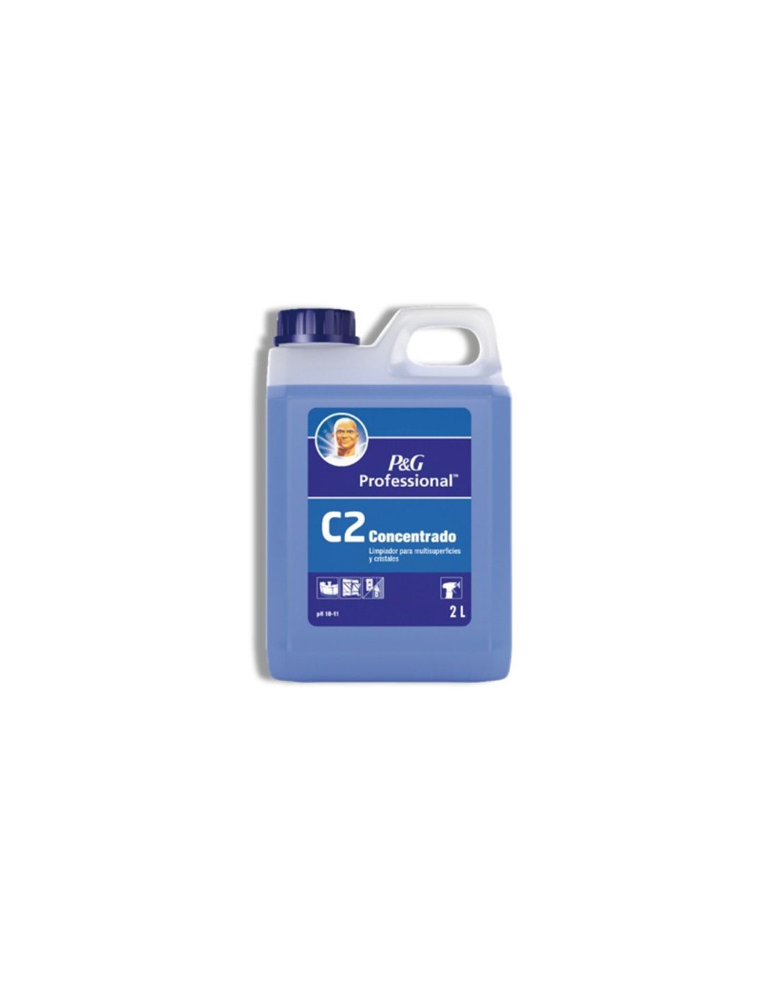 El limpiador concentrado Mr Proper C2 está compuesto por una mezcla de disolventes, tensioactivos e higienizantes que consiguen que en un solo producto tengamos un eficaz limpiador multisuperficie, un higienizante y un limpiador se superficies de cristal o espejo. Con el Mr Proper C2 podrás eliminar con rapidez las huellas dactilares y restos de grasa de una sola pasada. Consigue un brillo espectacular en espejos y cristales dejando un aroma muy agradable. Con el sistema profesional Mr Proper conseguirás resultados de limpieza sorprendentes con rapidez, con su dosificación ayudarás a controlar costes de uso. Este sistema está pensado para un uso sencillo y práctico.