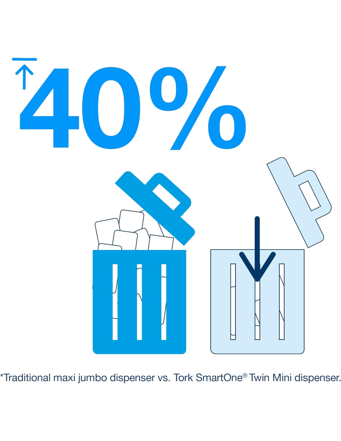 El papel wc de 2 capas para el sistema Tork Smart-One mini T9 es un papel de un tejido muy suave con alto brillo. El sistema Tork-Smartone de dispensación de una sola hoja reduce el consumo de papel hasta un 40%. Adecuado para aseos con un gran tránsito de usuarios. La cubierta traslúcida de los dispensadores T9 permite ver cuando es necesario reponer papel sin necesidad de abrirlo.