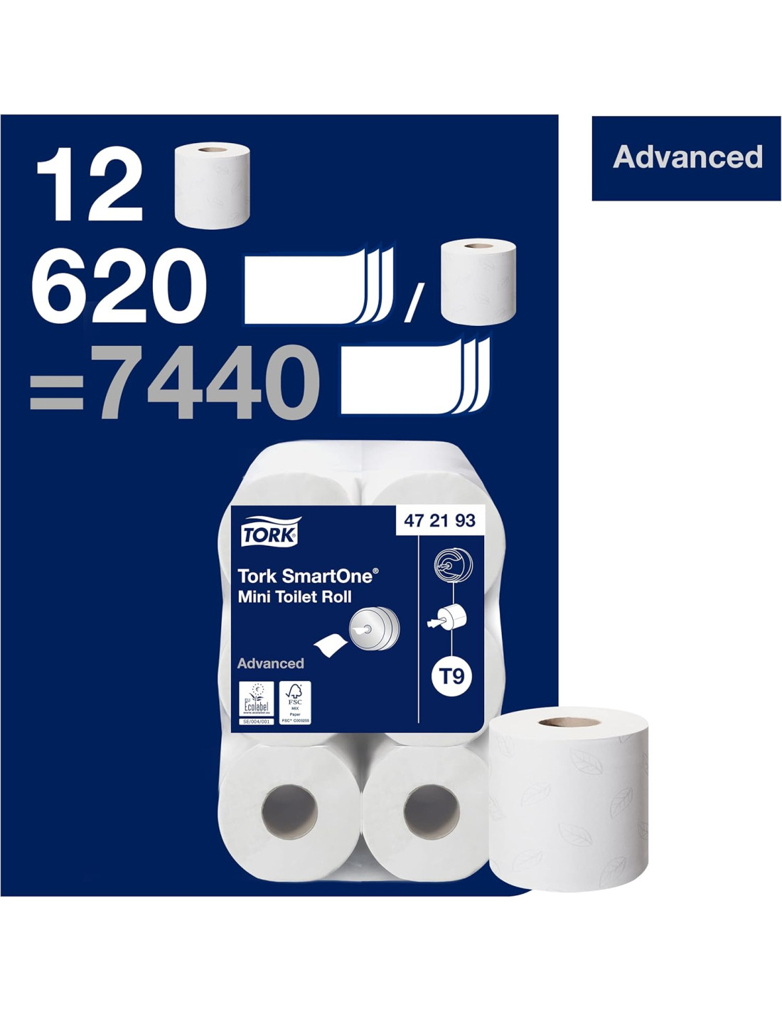 PAPEL WC 2 CAPAS TORK SMART-ONE MINI T9 BLANCO 12 UNIDADES