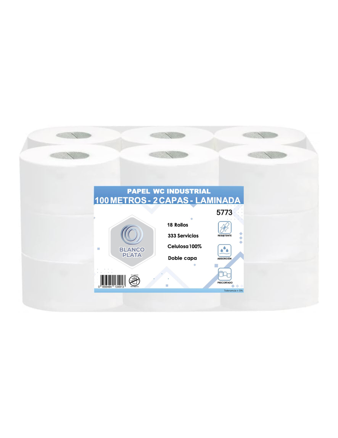 El papel higénico Industrial Blancoplata está compuesto por 18 rollos de 100m de 100% celulosa de dos capas y 333 servicios. Se trata de un papel de alta calidad, suave al tacto, gran poder de absorción y resistencia. Este papel cuenta con el certificado Cradle to Cradle como producto ecoeficaz y el certificado de Calidad. certificada. Este papel lo puedes utilizar CON ESTE DISPENSADOR