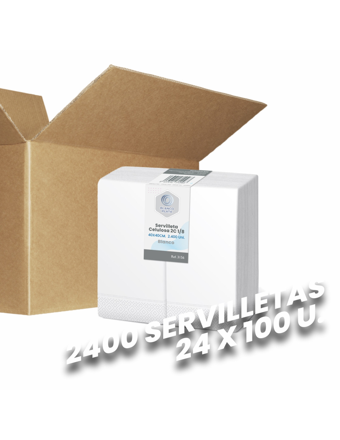 SERVILLETA CELULOSA BLANCA BLANCOPLATA 40X40CM 1/8 2400 UNIDADES