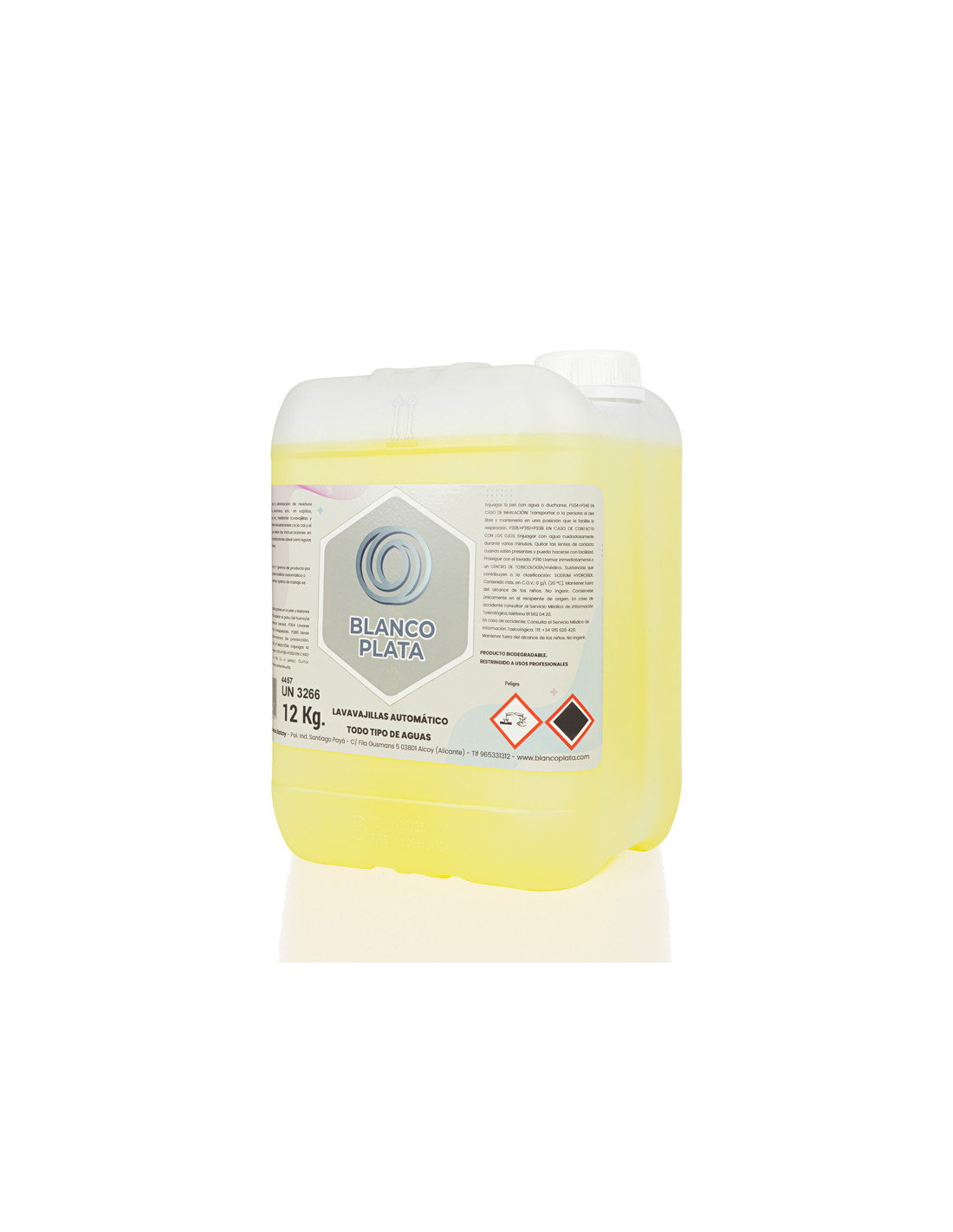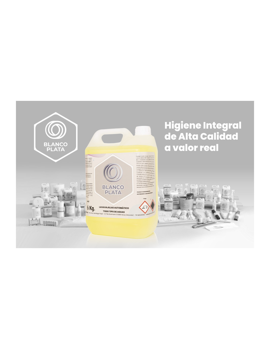 El lavavajillas automático para todo tipo de aguas Blancoplata de 5l es un detergente que elimina los residuos orgánicos en las vajillas, cuberterías y cristalerías en lavavajillas automáticos y túneles de lavado. Contiene secuestrantes de la cal y magnesio del agua que evita que se produzcan incrustaciones en el lavavajillas, alargando su vida útil.